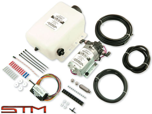 AEM's Boost Dependent, PN 30-3300 gasoline Water/Methanol Injection System's compact 1 gallon tank includes a high tech conductive low fluid level indicator with a positive lock connector and color matched wires to the wiring harness.