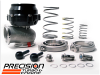 Featuring a black anodized billet aluminum wastegate cap, and a Kevlar reinforced silicone diaphragm, these units can be used in any kit or setup that currently utilizes a V-band style 44mm gate. Includes all the necessary hardware (flanges, clamps, springs, etc), and can accommodate a wide range of boost pressures (anywhere from 1.5PSI up to 25.5PSI).
